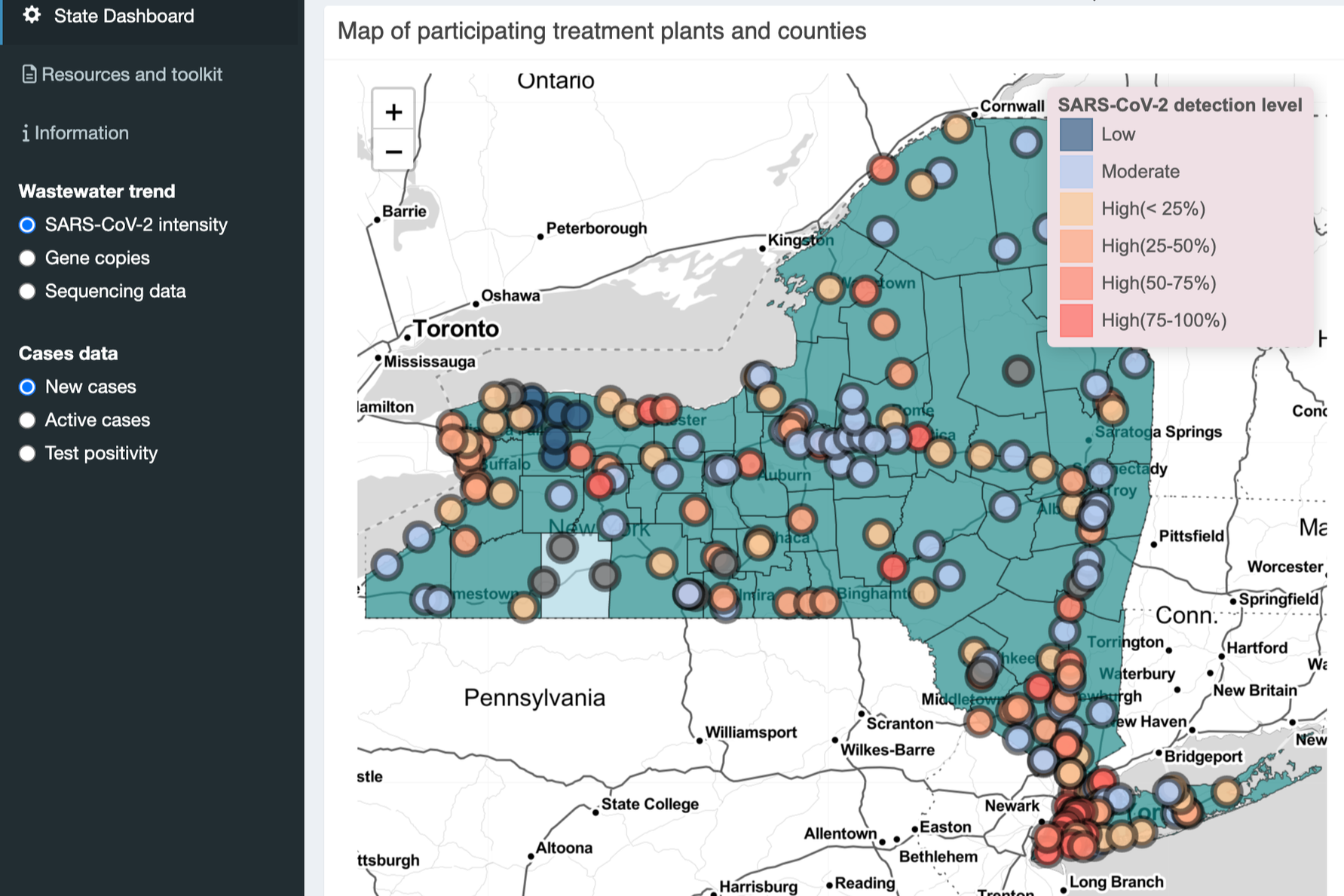 In this collaborative effort, participating wastewater treatment plants across New York State provide community-representative wastewater samples that are analyzed by Network-affiliated laboratories. Public health professionals use these data to identify and track infectious diseases and emerging pathogens. These findings are shared with the public through our dashboards and with local authorities, assisting them in their response efforts and guiding public health strategies.