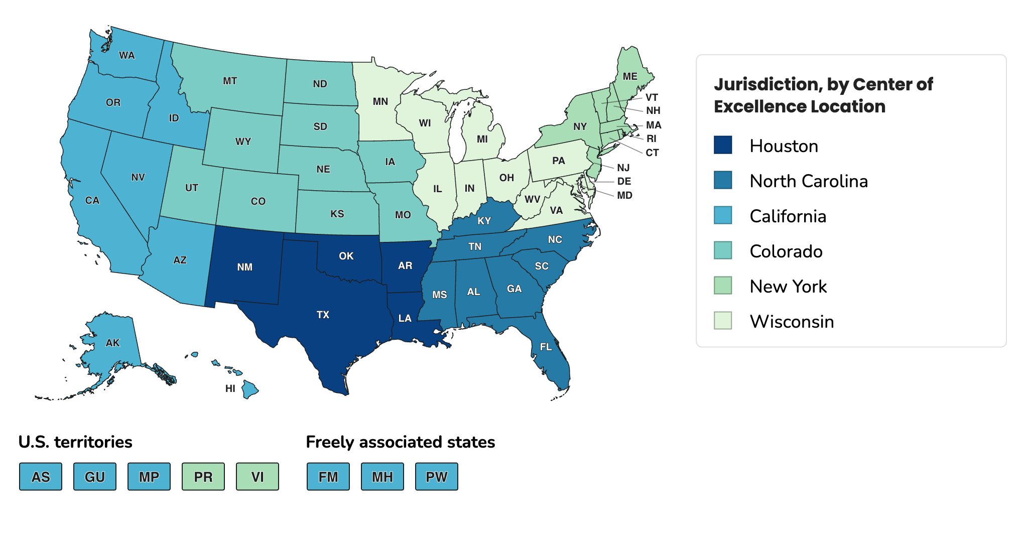 The New York NWSS Center of Excellence supports wastewater surveillance program in the following states and territories: